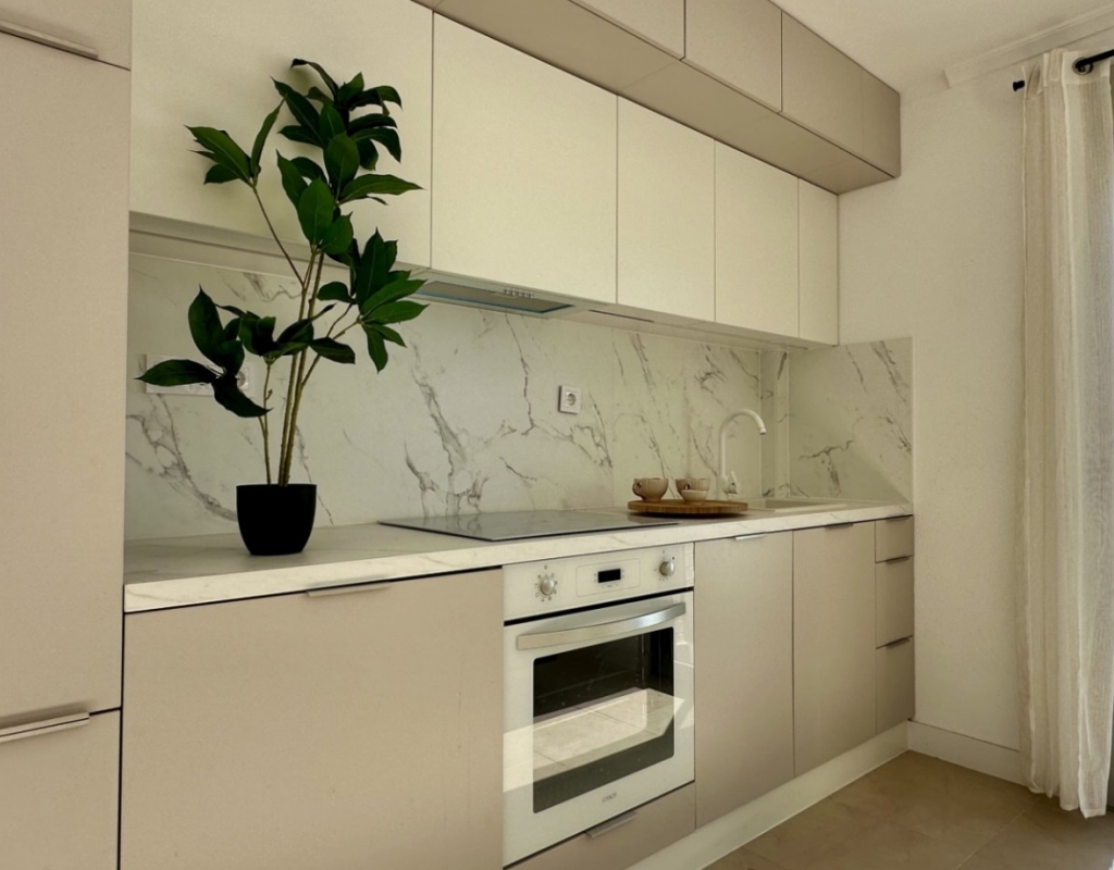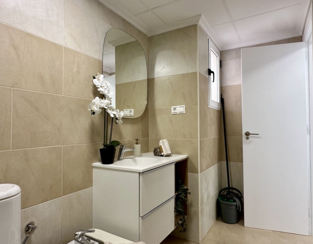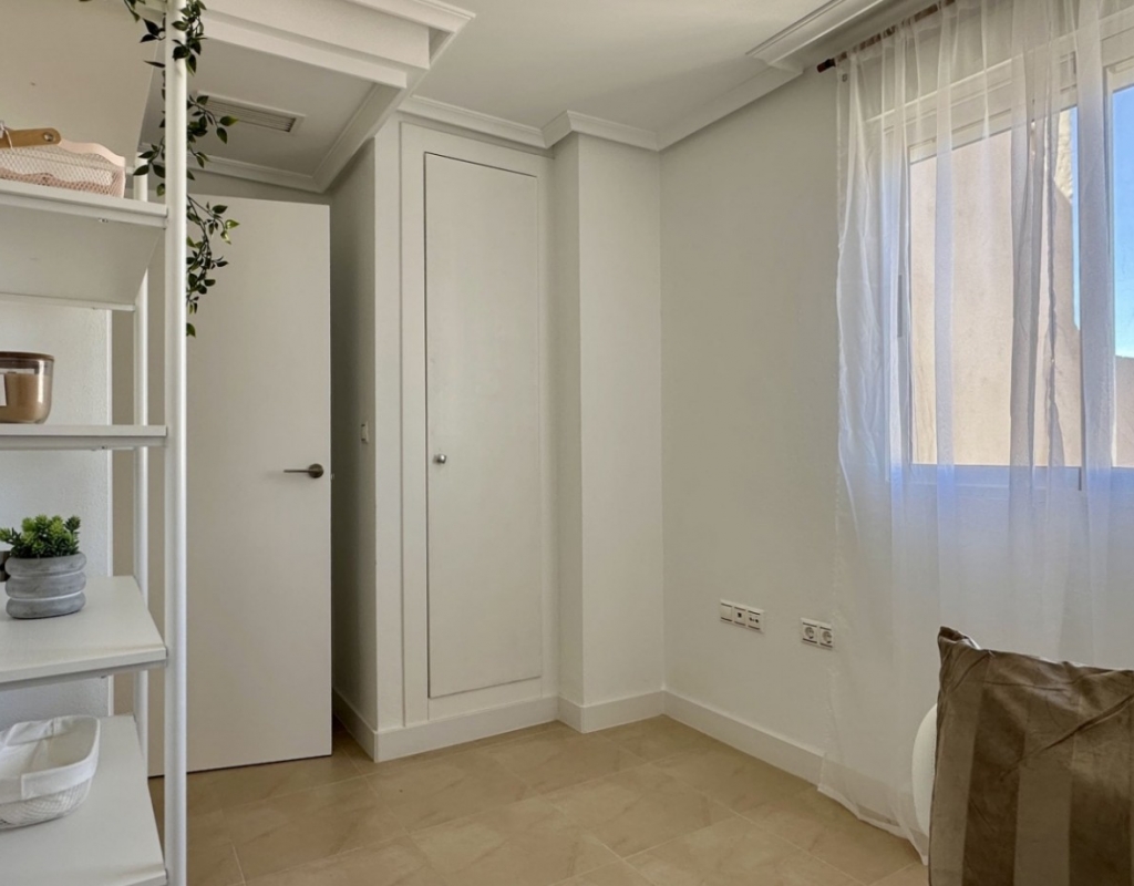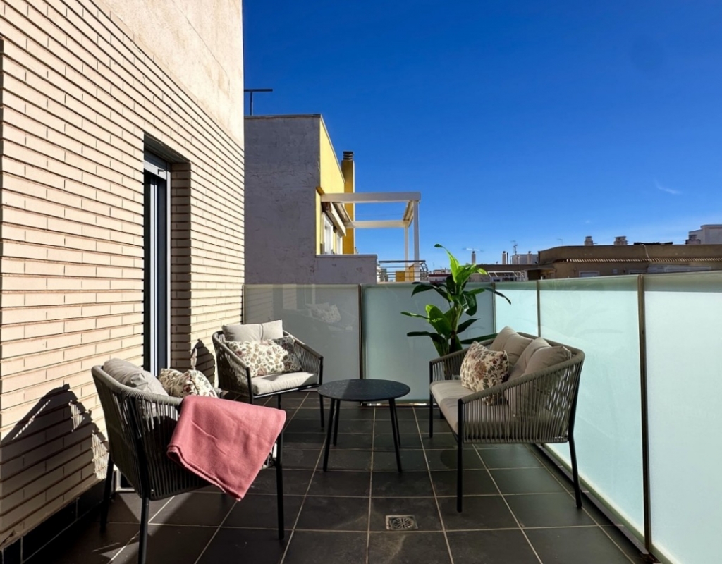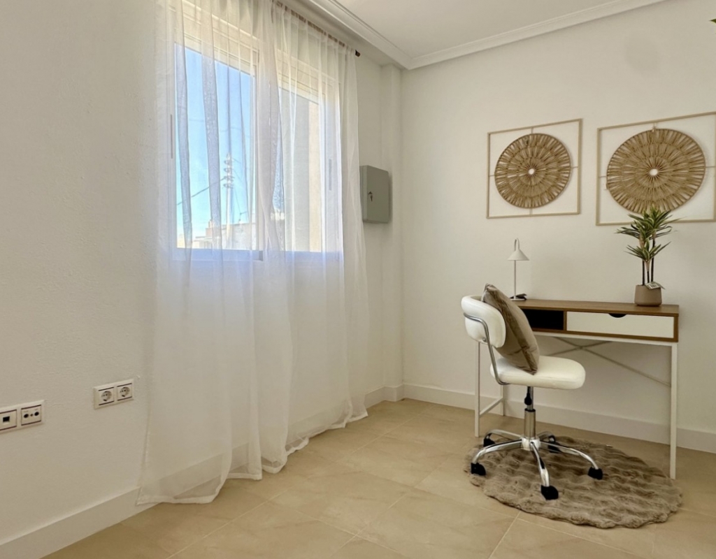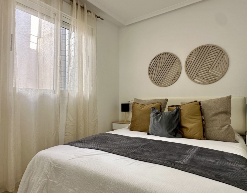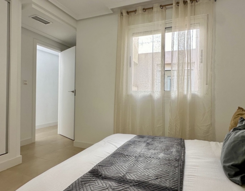 This beautifully renovated apartment is located on the 5th floor of a well-maintained building in Torrevieja, just a 5-minute walk from the sea. The property offers 90 m² of modern living space and features 3 spacious bedrooms, 2 stylish bathrooms, and a bright open-plan living and dining area. The apartment has been fully renovated in a contemporary style, using modern materials and finishes throughout. One of the highlights is the large south-facing terrace, perfect for enjoying the sun all day, relaxing, or entertaining guests. ✔ 5th floor✔ South orientation✔ Fully renovated – modern design✔ Large sunny terrace✔ Walking distance to the beach✔ Optional underground garage parking (+13,000 €) An ideal property for permanent living, a holiday home, or a rental investment in one of Torrevieja’s most convenient locations.
