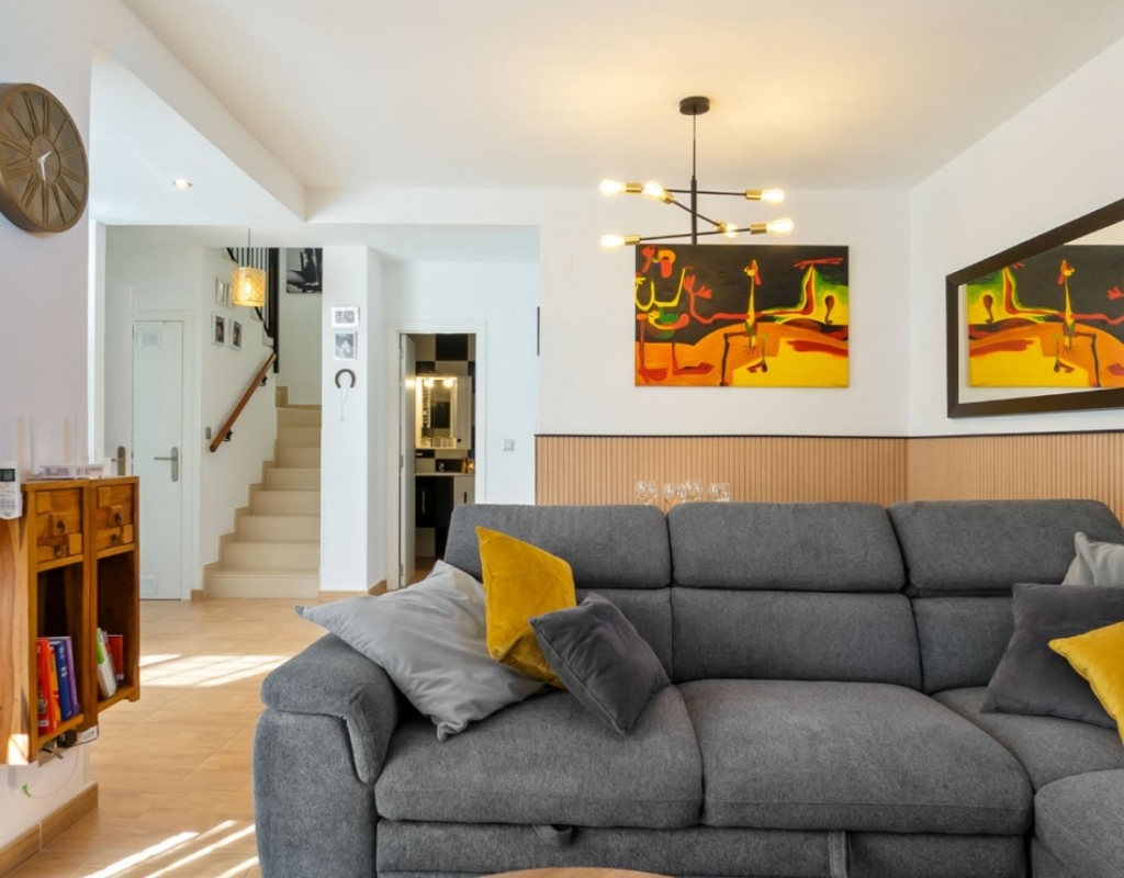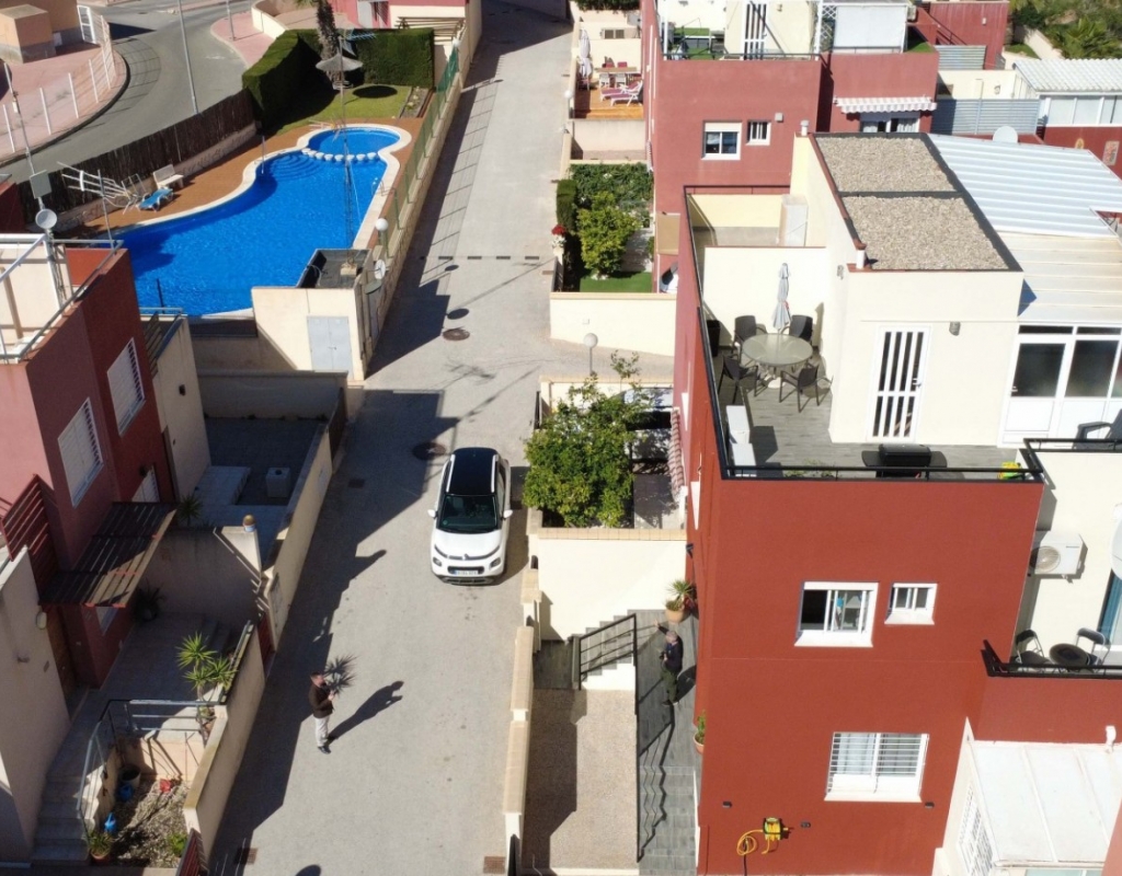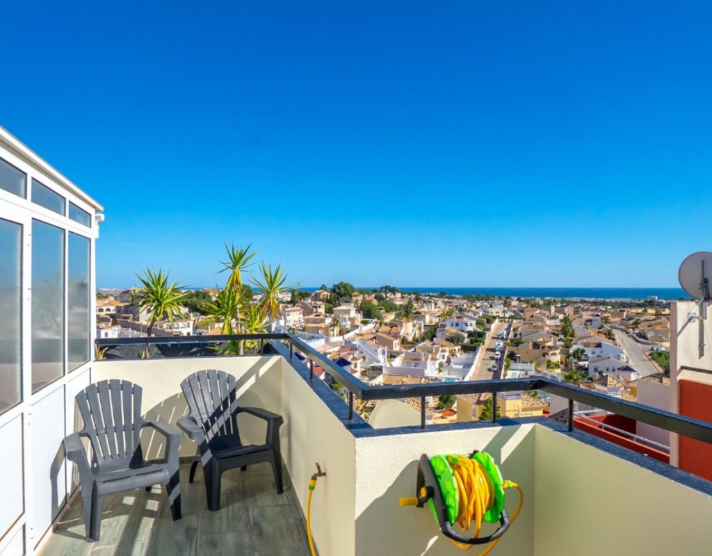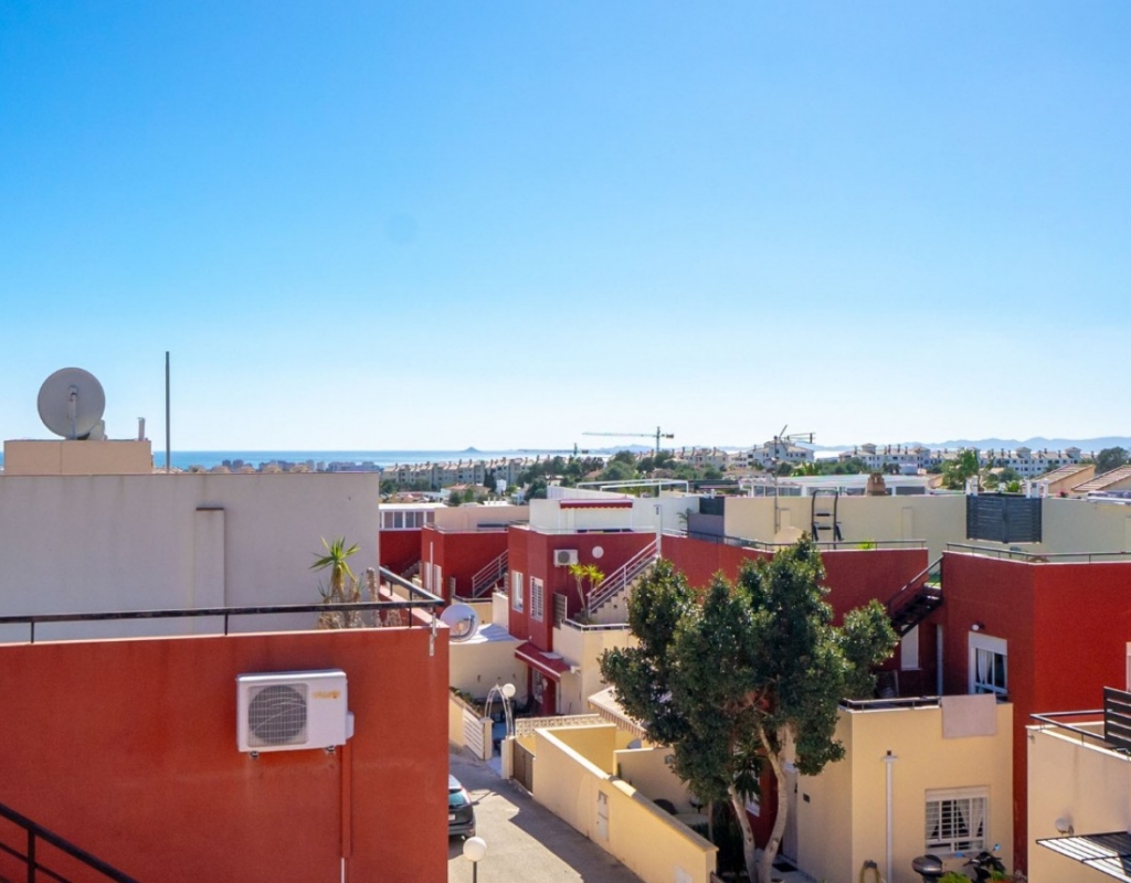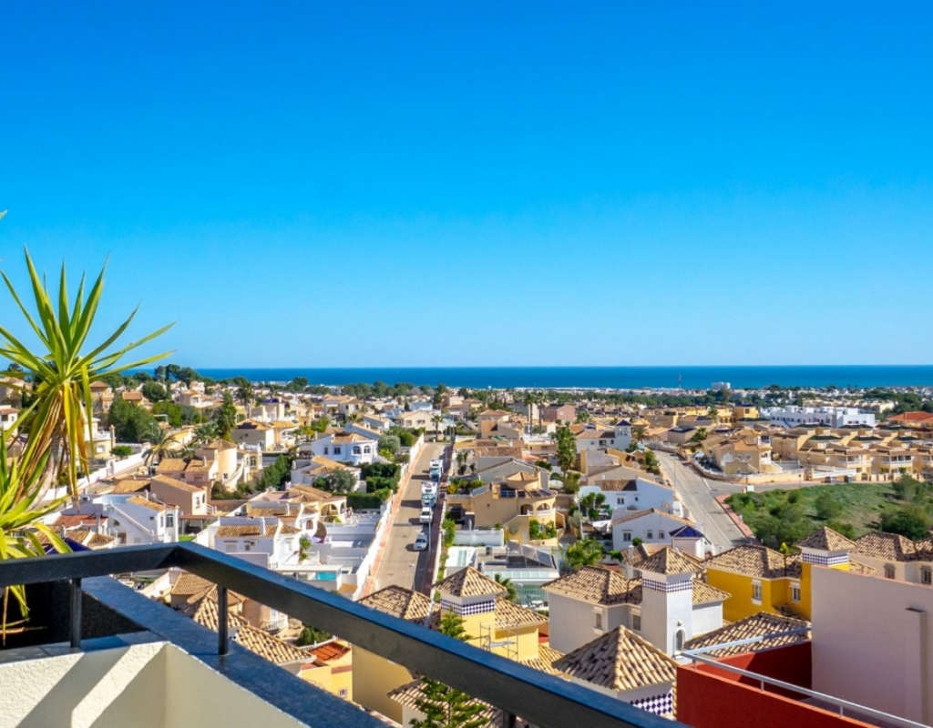 Welcome to this charming 3-bedroom, 2-bathroom townhouse located in the highly sought-after area of Villamartín, on the beautiful Costa Blanca. This property offers a perfect combination of comfort, outdoor living, and stunning views — ideal as a permanent residence, holiday home, or investment property. On the ground floor, you’ll find a bright and welcoming living area with dining space, a fully equipped kitchen, one bathroom, and direct access to a spacious private terrace — perfect for outdoor dining, relaxing, or enjoying the Mediterranean climate all year round. Upstairs features three well-proportioned bedrooms and an additional bathroom. From here, you have access to a private balcony, while the highlight of the home is the impressive roof terrace (solarium) offering spectacular sea views — the perfect place to unwind, sunbathe, or entertain guests. The property is partly renovated, giving it a fresh and modern touch while still offering potential to personalise further. It is sold fully furnished, making it completely ready to move into or rent out immediately. Residents also benefit from access to a beautiful communal pool area, ideal for cooling off during the warm Spanish summers. Located close to golf courses, restaurants, shops, and just a short drive to the beaches of Orihuela Costa, this townhouse offers excellent value in one of the most popular areas on the Costa Blanca. A fantastic opportunity in Villamartín — viewings highly recommended.