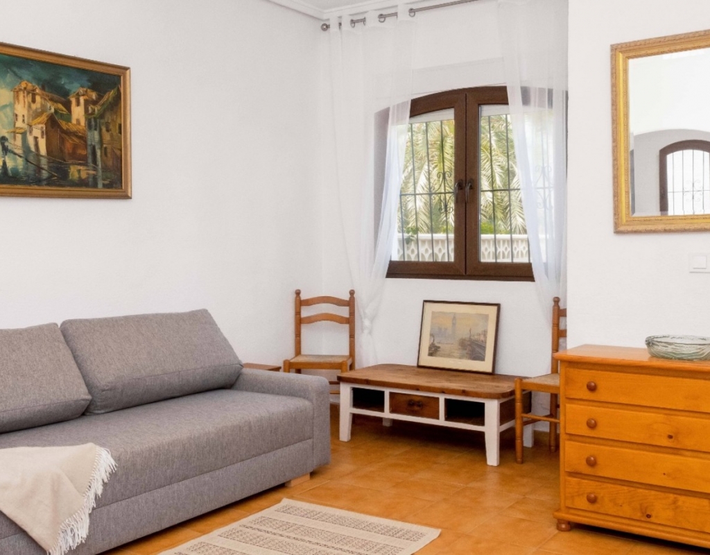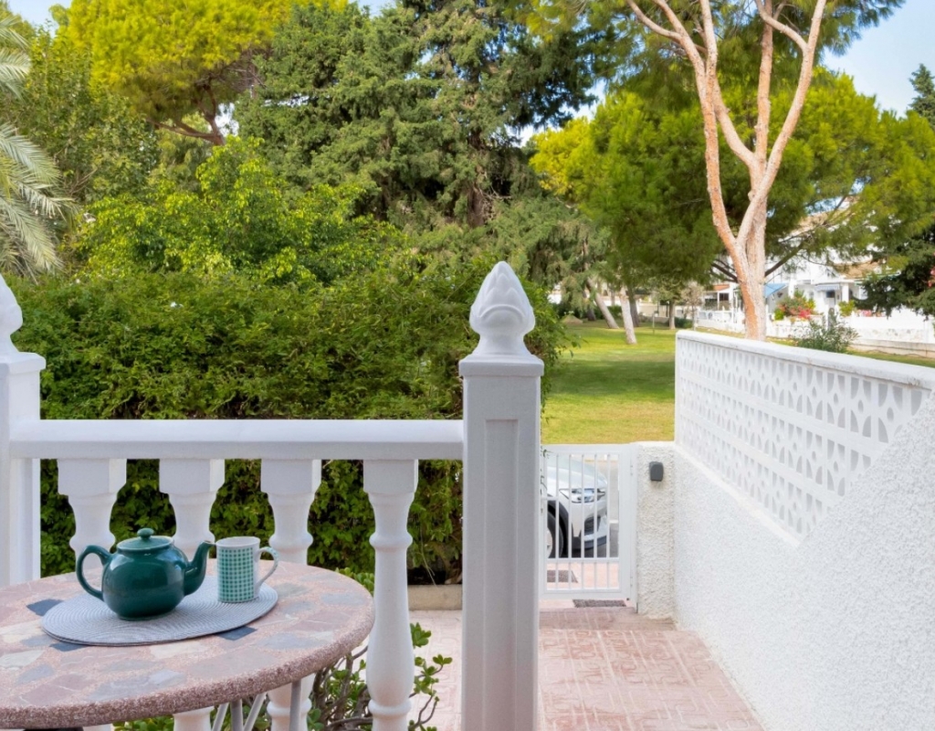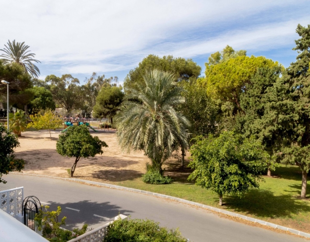 Welcome to this beautifully fully renovated townhouse, ideally located in the very heart of La Zenia, set directly beside a peaceful green park — a rare combination of tranquility and prime coastal living. The property enjoys an exceptional location just 350 metres from La Zenia Beach and only 950 metres from La Zenia Boulevard, one of the largest and most vibrant shopping centres on the Costa Blanca. This charming Spanish-style home has been completely refurbished to a high standard with great attention to detail, offering modern comfort while preserving its Mediterranean character. Inside, the property features a bright and spacious living area, seamlessly connected to a brand-new fully equipped kitchen, including a drinking water filtration system. Large solar-efficient windows ensure a comfortable indoor climate throughout the year. The home offers three bedrooms with beautiful park views and three bathrooms, including one conveniently located in the courtyard alongside a dedicated laundry area. The renovation includes new electrical installation, new plumbing, reinforced security entrance doors, fitted wardrobes and air conditioning throughout — making this property truly move-in ready. Outdoor living is equally inviting, with a cosy private courtyard featuring a barbecue area, terrace and patio spaces perfect for relaxing, entertaining or enjoying the Mediterranean lifestyle. The price also includes a private covered parking space and storage room, adding practicality and long-term value. Sold fully furnished, this townhouse represents a rare opportunity to own a turnkey home in one of the most desirable locations on the Costa Blanca — combining central convenience, walking distance to the beach and exceptional peace and privacy. Key Features Townhouse · 2 floorsBuilt area: approx. 80 m²Plot: 50 m²3 bedrooms · 3 bathroomsTerrace & balconyFully renovatedFitted wardrobesStorage roomAir conditioningCovered parking includedSold furnished