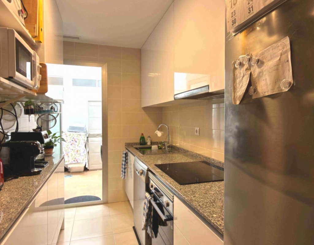 Discover this modern and fully upgraded first-floor apartment in the heart of San Miguel de Salinas — offering comfort, quality, and a prime central location within walking distance to all amenities. Originally built in 2015 and fully finalized in 2023, the property has been upgraded throughout with new electrical and water installations, modern windows, updated flooring, and fitted wardrobes, creating a fresh and move-in-ready home. The apartment features a bright and spacious living and dining area, a fully equipped kitchen, two double bedrooms, and two bathrooms, including a stylish en-suite to the master bedroom. The layout is practical and comfortable, ideal for both permanent living and holiday use. Residents benefit from access to a communal rooftop pool with open views — perfect for relaxing and enjoying the Mediterranean climate. The building also offers an elevator for easy access, as well as a private underground parking space and storage room, adding convenience and value. Located in a central area of San Miguel de Salinas, you are just steps away from shops, restaurants, cafés, and all essential services, while the beaches of Orihuela Costa and several golf courses are only a short drive away. A fantastic opportunity to own a modern, fully updated apartment in a well-connected and sought-after area on the Costa Blanca.