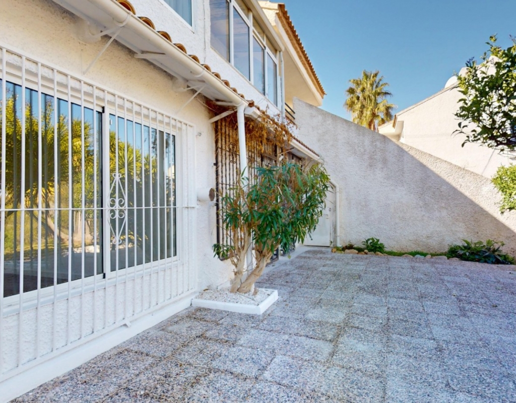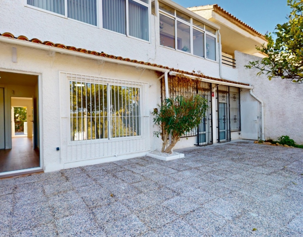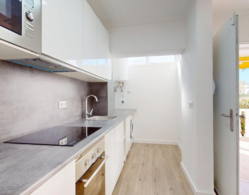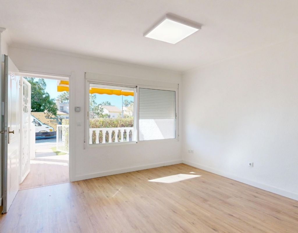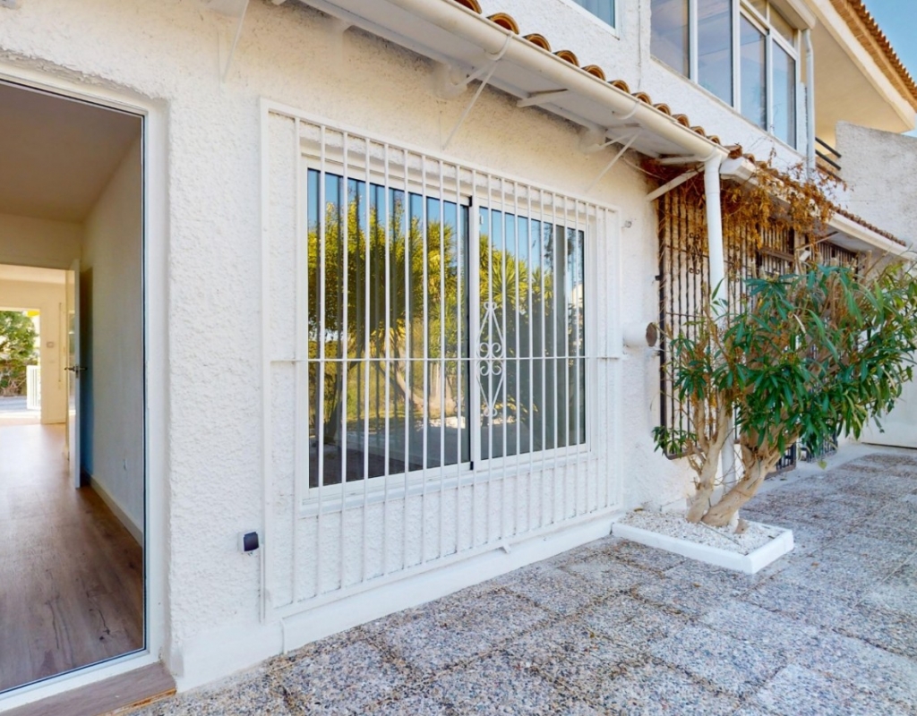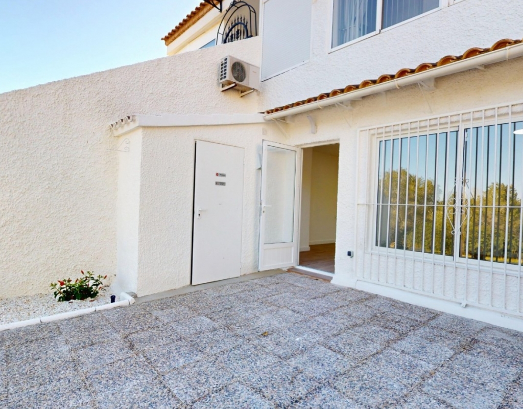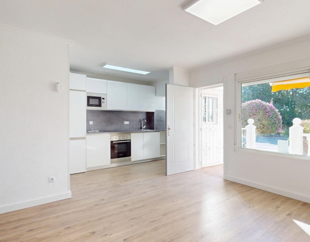 Located in the well-established area of Villamartín, this beautifully renovated ground floor apartment offers a perfect combination of modern design, comfort, and outdoor living, making it an excellent property for sale in Villamartín Orihuela Costa. The property has been fully refurbished, featuring new flooring, updated installations (electricity and plumbing), and a stylish, move-in-ready finish throughout. Inside, the home offers two spacious bedrooms with fitted wardrobes, a modern bathroom with walk-in shower, and a brand-new fully equipped kitchen with appliances including washing machine and dishwasher. The bright living area connects seamlessly to the outdoor spaces, creating a comfortable and functional layout. One of the standout features of this property is its exceptional outdoor space. At the front, you will find a private covered porch with awning, perfect for relaxing in the shade, while at the rear there is a large private terrace, ideal for outdoor dining, entertaining, or enjoying the Mediterranean lifestyle all year round. The property also includes a practical exterior storage cupboard. The apartment is set within a well-maintained residential community surrounded by lush communal gardens, creating a peaceful and green environment. The location is highly convenient, within walking distance to La Rioja commercial centre, Dialprix supermarket, restaurants, and local amenities, and just minutes by car to Villamartín Plaza, Zenia Boulevard, golf courses, and the beaches of Orihuela Costa. This is an ideal home near golf courses and the beaches of Orihuela Costa, and a perfect holiday home or investment property in Costa Blanca South.